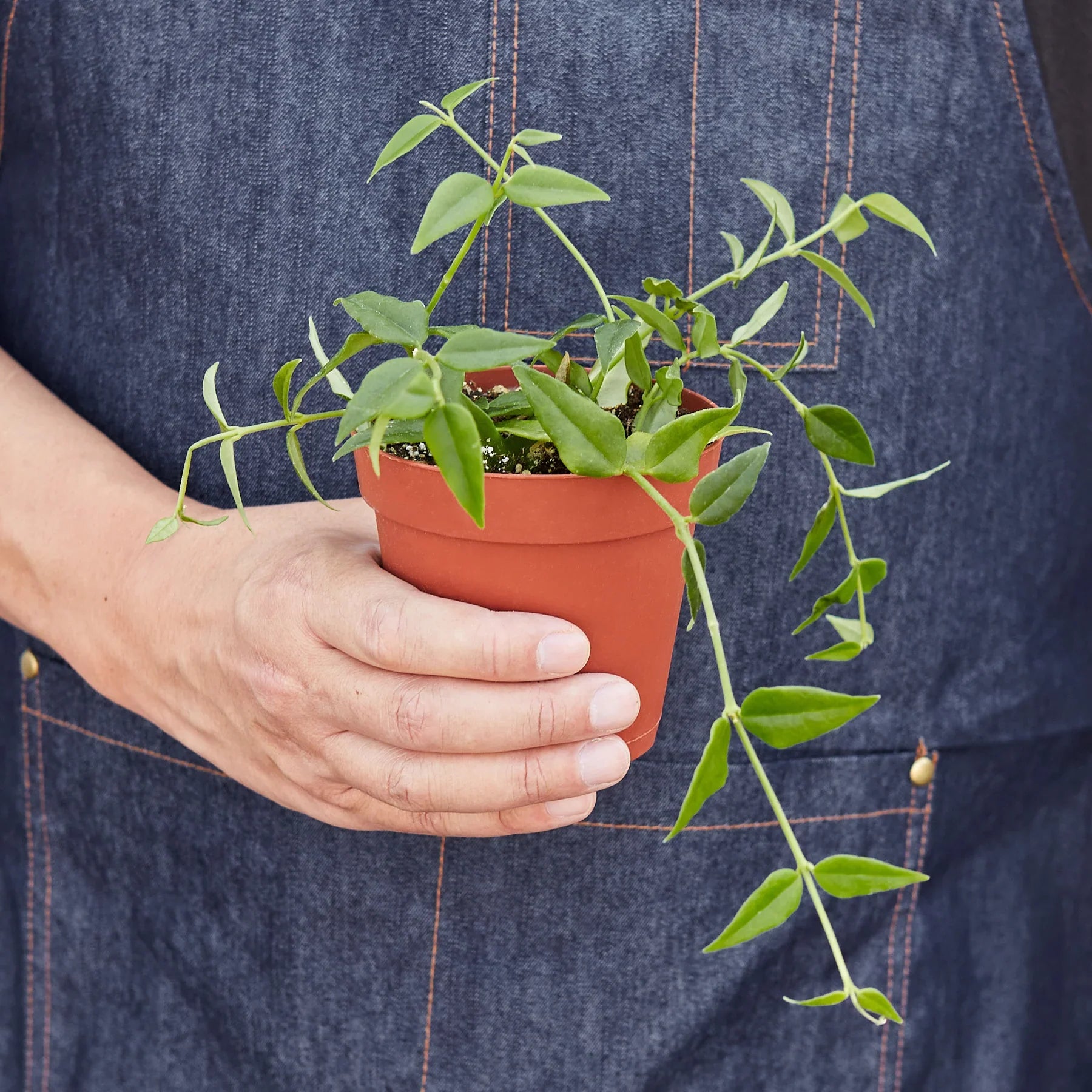 - Description: Porcelain flower or wax plant is a commonly grown houseplant. It has long slender vines covered with waxy, deep green leathery leaves sometimes flecked with silver or creamy white. To make this plant appear denser, wrap its sparsely leaved stems around a bamboo trellis and secure with florist tape or nylon stocking strips. Bright indirect light year-round is ideal. Allow the soil to dry out between waterings. Wax plants love high humidity and the foliage appreciates misting. The flowers are star-shaped, in parachute-shaped clusters, with a sweet fragrance and may produce a sticky sap.